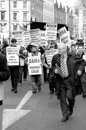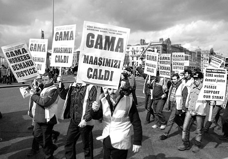 Great demo today - great pics. Very brave of the Turkish workers to come out like that considering the huge amount of intimidation they face from GAMA management.